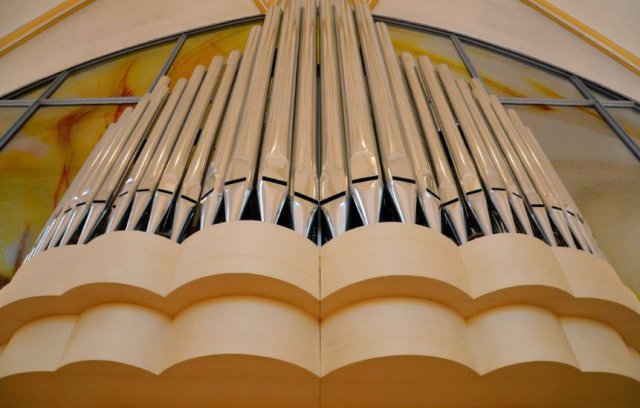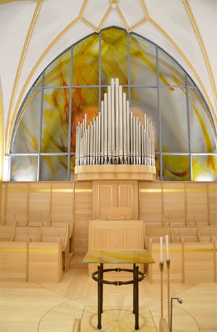 Für die neu gestaltete Chorkappelle durften wir ein neues Orgelwerk mit 10 Registern fertigen. Die Grundidee ging vom Johannesprolog aus: "Am Anfang war das Wort". Das aufgeschlagene Buch war der Leitgedanke für diesen Prospektentwurf, welcher symmetrisch angeordnet ist und immer wieder von innen nach außen tritt.