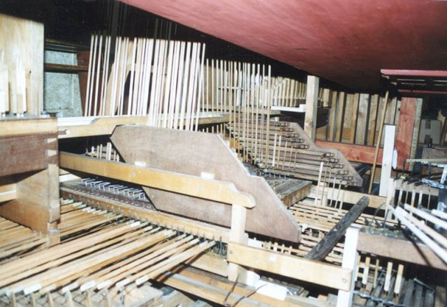 Das nicht von Mooser stammende Bassregister 8’ im Pedal wurde durch die ursprünglich vorgesehene und von uns reskonstruierte Bassposaune ersetzt. Als Vorbild diente uns eine noch erhaltene, originale Mooserzunge aus der Domorgel von Esztergom.