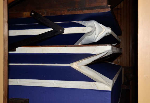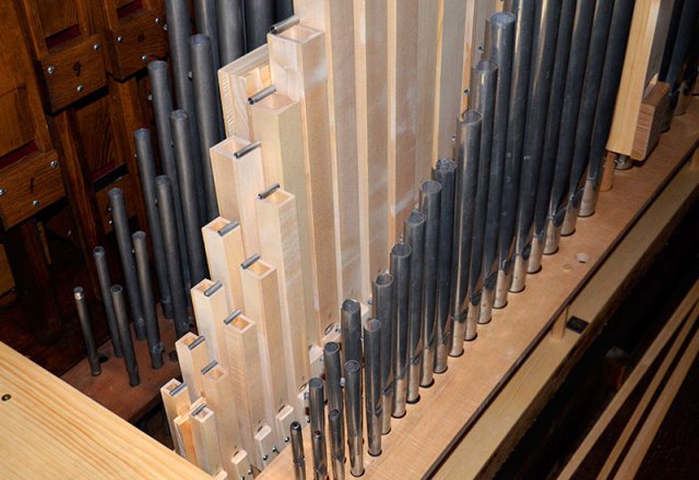 Eine Herausforderung bei diesem Werk war der starke Verwurmungsgrad. Neben den holztechnischen Arbeiten am Spieltisch und der ganzen technischen Anlage, wurde auch der große Magazinbalg sowie alle Kegelventile und Ventile neu beledert. Somit kommt jetzt wieder das romantische Klangbild von Leopold Breinbauer zur Entfaltung.